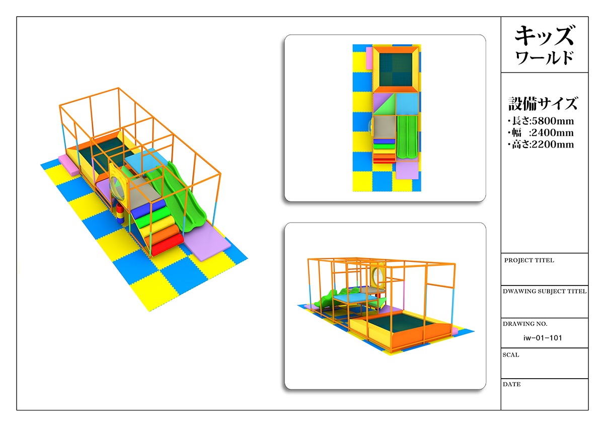 小型タイプ(iw-01-101) 2022.04.19 2022.03.21 製品番号:iw-01-101製品サイズ:長さ2400mm / 幅5800mm / 高さ2200mm設置面積:長さ3500mm / 幅7300mm / 高さ2300mm