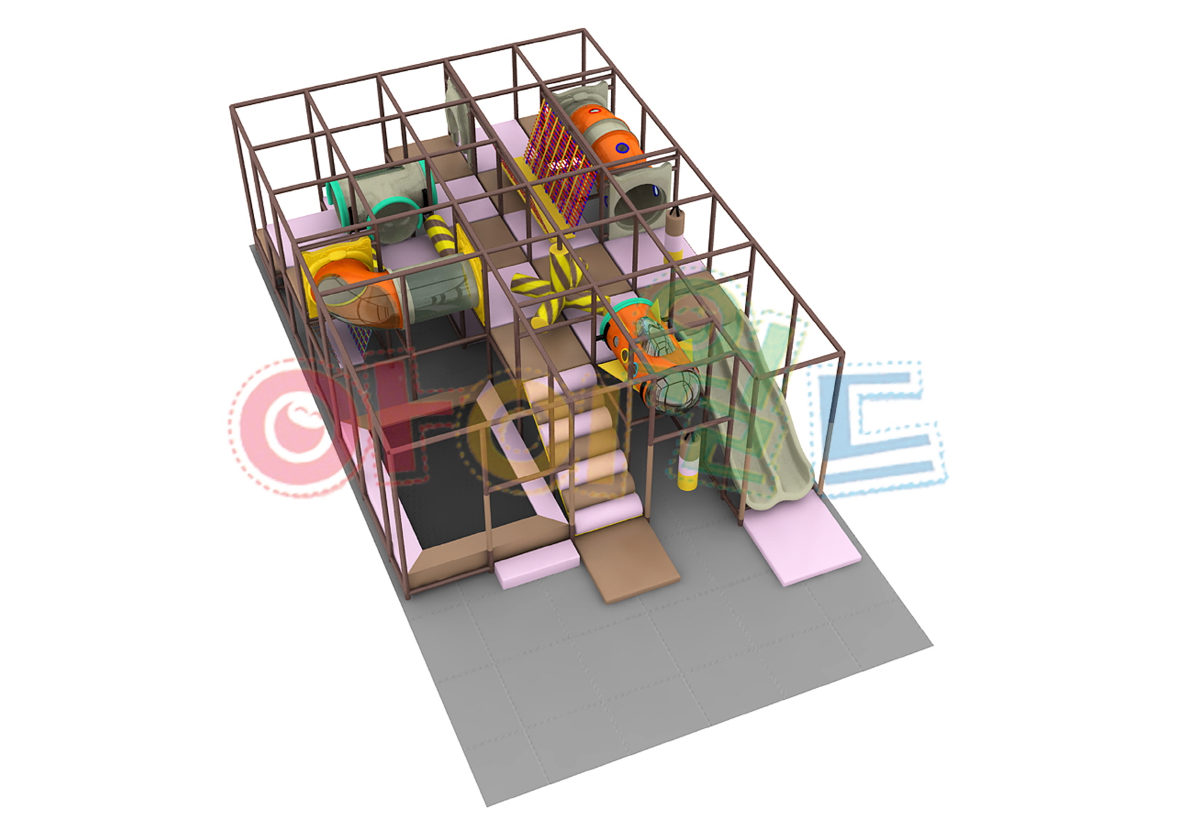 大型タイプ(iw-03-551) 製品番号:iw-03-551製品サイズ:長さ9300mm / 幅9300mm / 高さ2500mm設置面積:長さ9500mm / 幅10300mm / 高さ2600mm 室内遊具(全体)大型タイプ