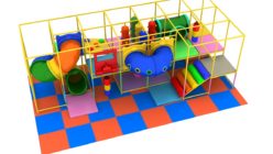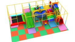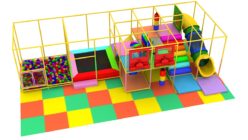 中型タイプ(iw-02-205) 製品番号:iw-02-205製品サイズ:長さ5800mm / 幅4700mm / 高さ2500mm設置面積:長さ6000mm / 幅6200mm / 高さ2600mm 室内遊具(全体)中型タイプ